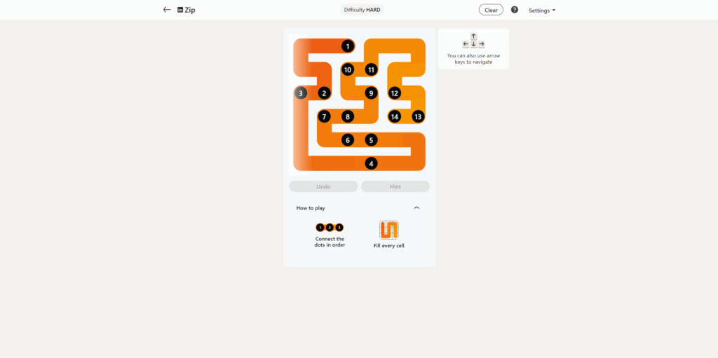 LinkedIn Zip Solution for September 26, 2025 (#193)