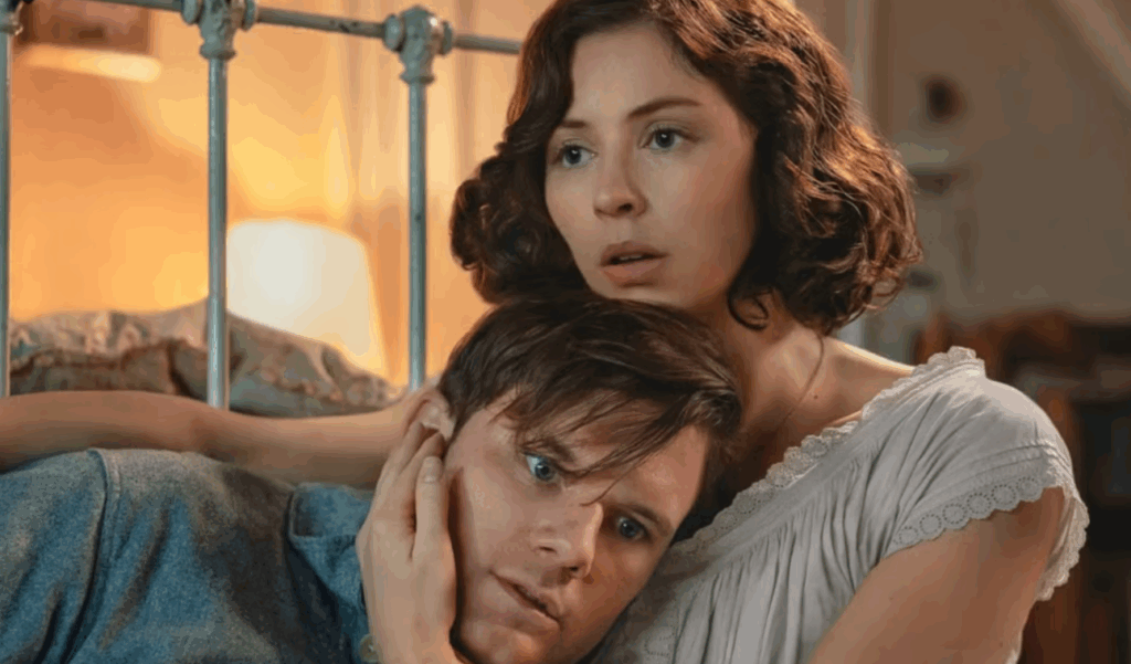 Henry Beauchamp (Jeremy Irvine) might have survived the battlefield, but he hasn’t escaped the war inside his head. Haunted by what he witnessed during World War I, Henry is a man held together by his love for Julia — her letters were his lifeline through the chaos. When they marry, she becomes his anchor. She is there for him through his nightmares and panic attacks.