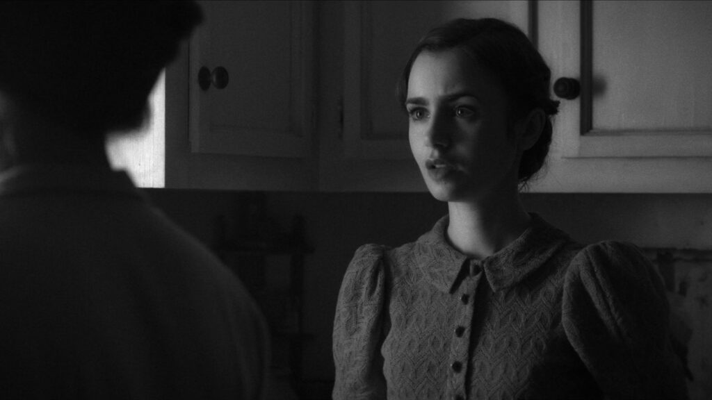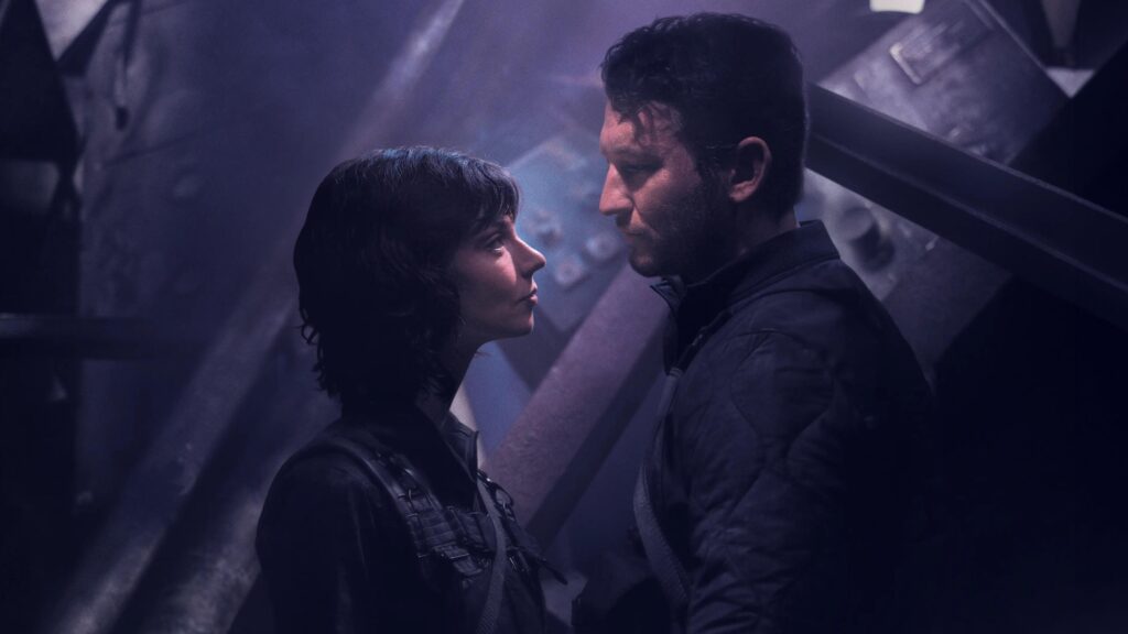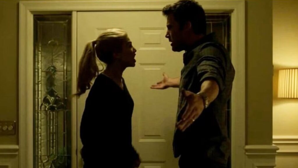 Then, buzzing glitches tear open the tranquil façade as Pike’s character reveals her true nature. Sonar pings that initially embody romantic connection become militaristic as the psychological warfare escalates between the dueling spouses.