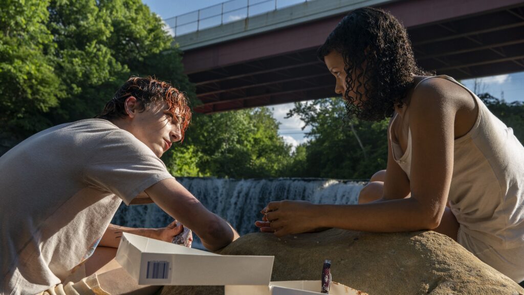 So they used acoustic guitars and stripped-down instrumentation that captures the loneliness of both Russell and Chalamet’s characters and the ravaged American countryside.