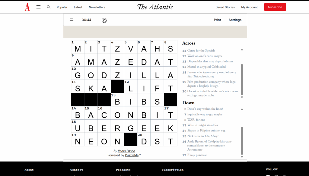 The Atlantic Crossword Solution for October 16, 2025