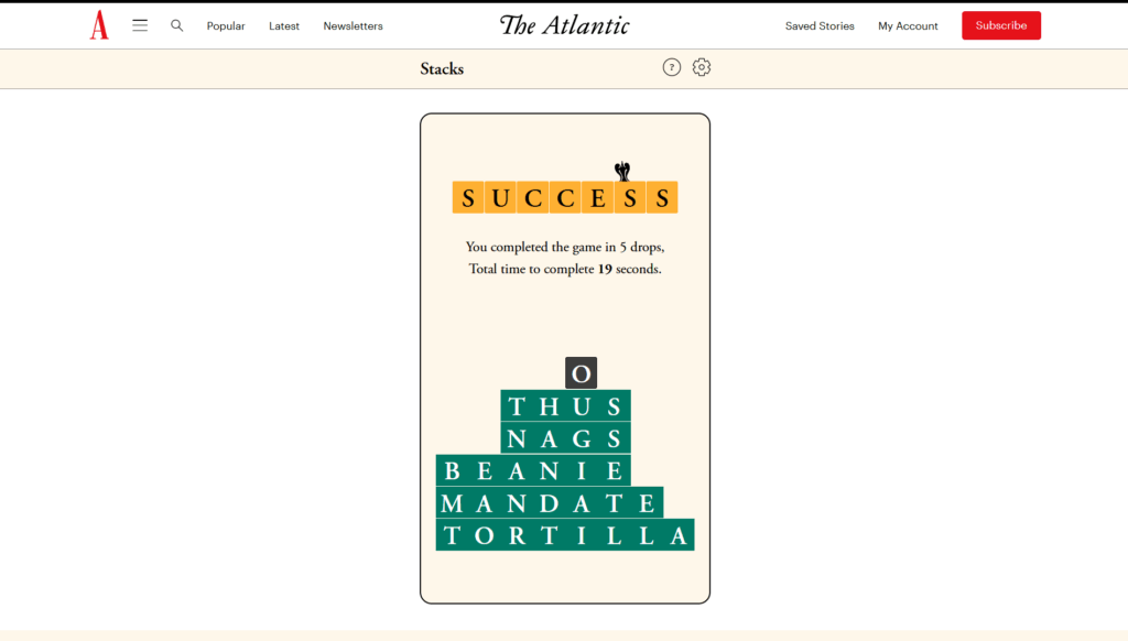The Atlantic Stacks Solution for October 16, 2025
